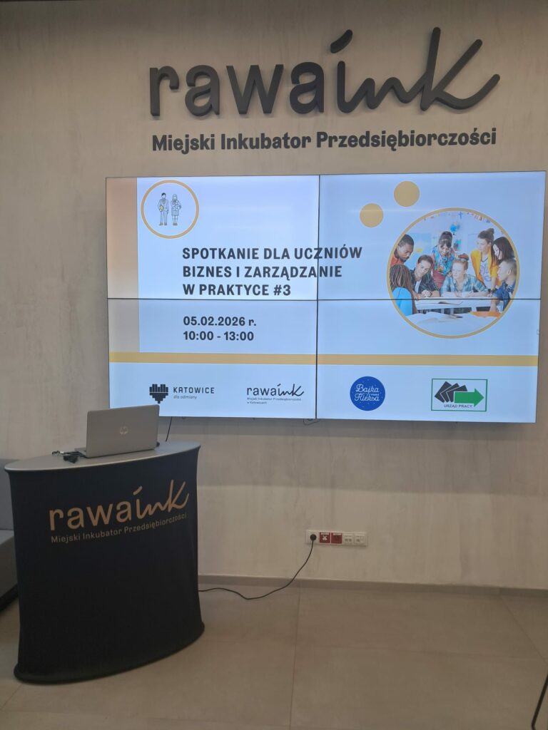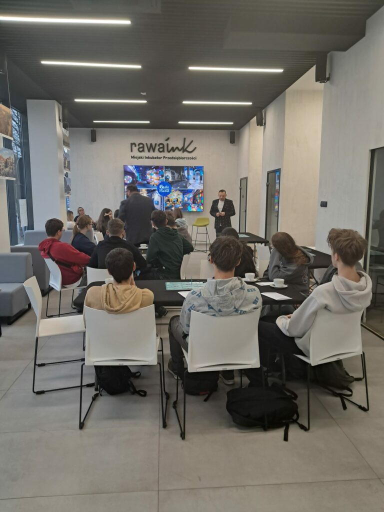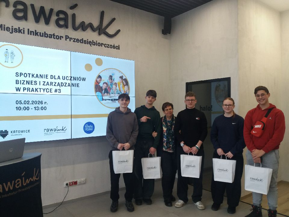 W dniu 05.02.2026r. klasa 1hte brała udział w spotkaniu „Biznes i zarządzanie w praktyce” w Miejskim Inkubatorze Przedsiębiorczości Rawa.Ink w Katowicach