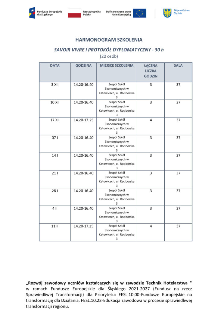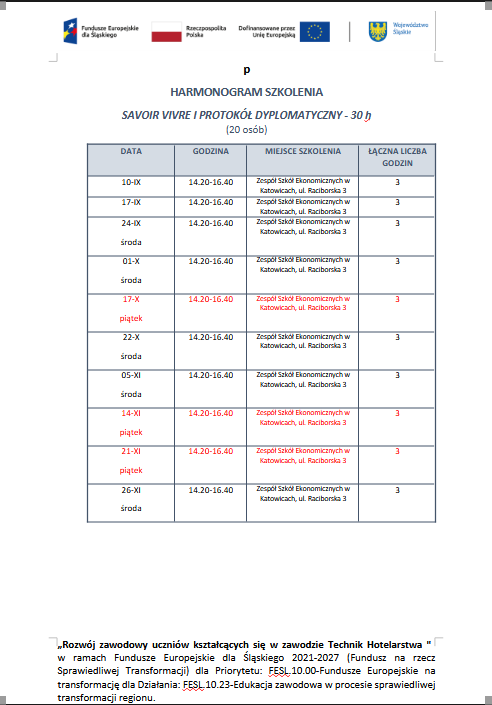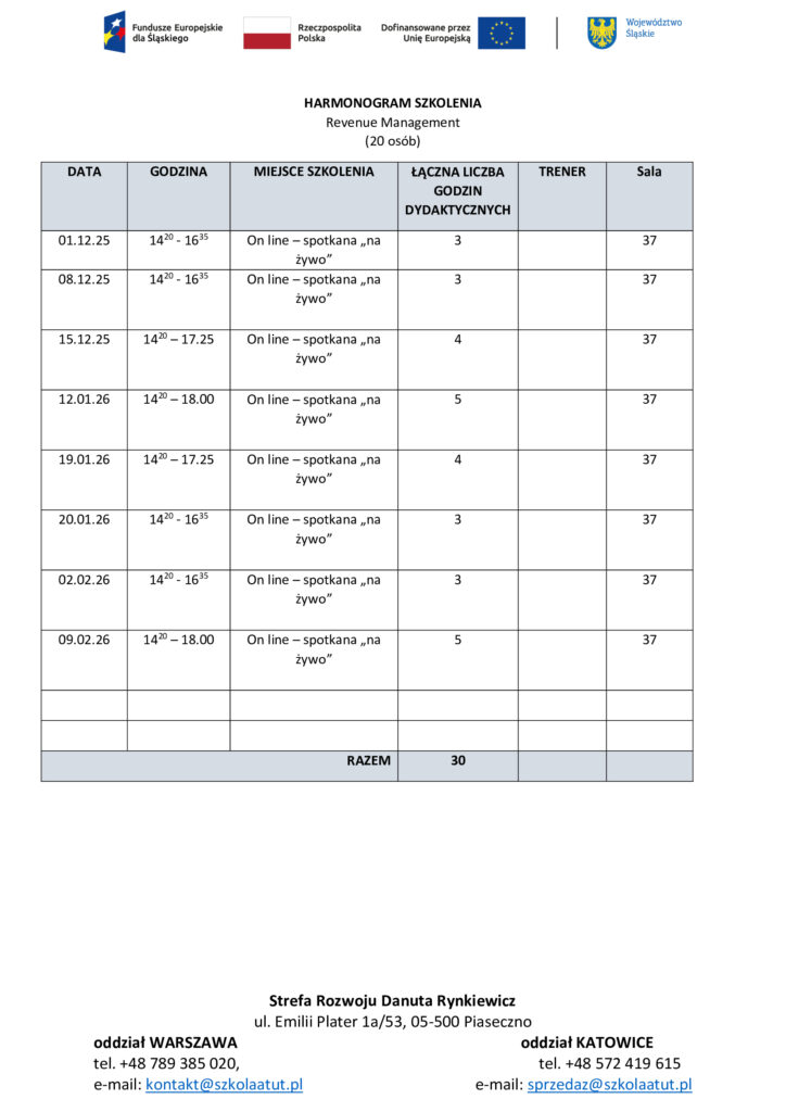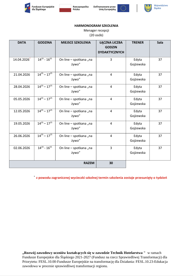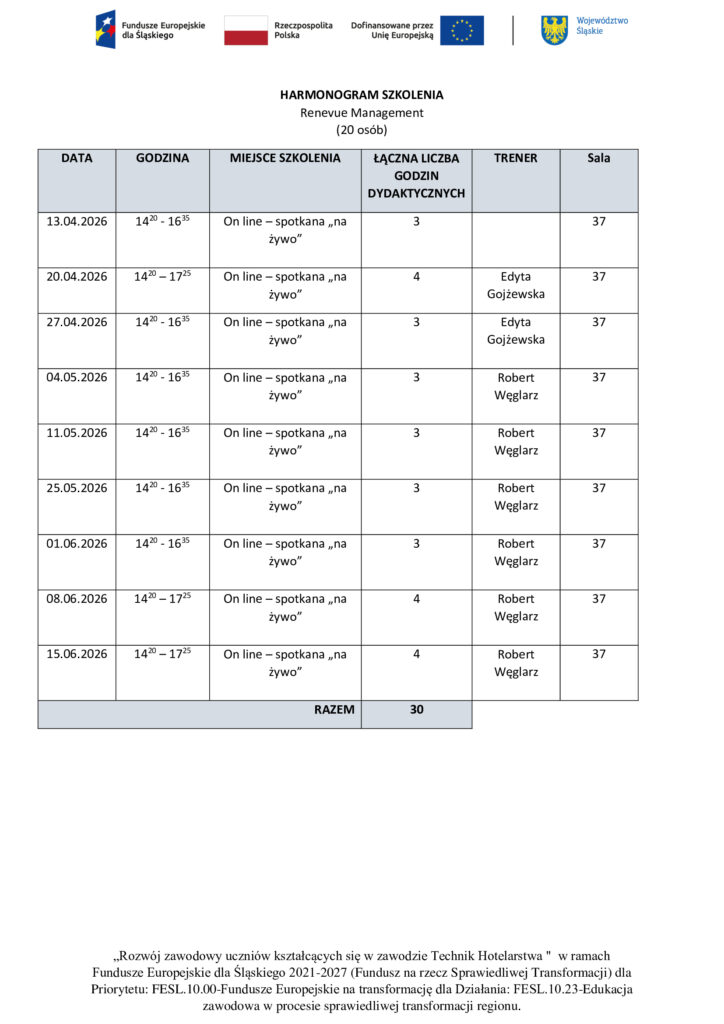 Harmonogramy szkoleń dla uczniów