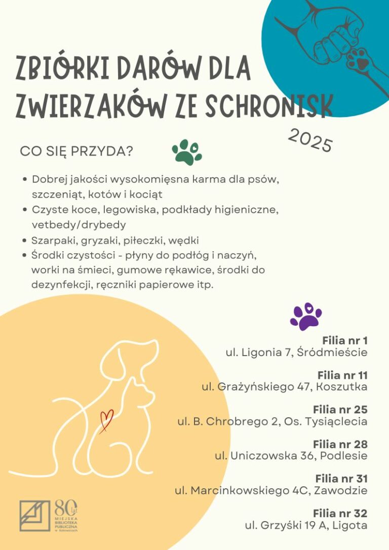 Z tej okazji nasza szkoła przyłącza się do zbiórki na rzecz schronisk, prowadzonej przez Miejską Bibliotekę Publiczną w Katowicach
