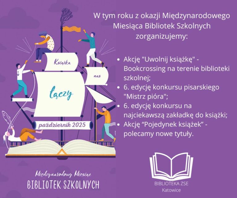 – Akcja „Pojedynek książek” startuje ponownie 17 października 2025. Będziecie mogli głosować na ulubione tytuły w bibliotece szkolnej.